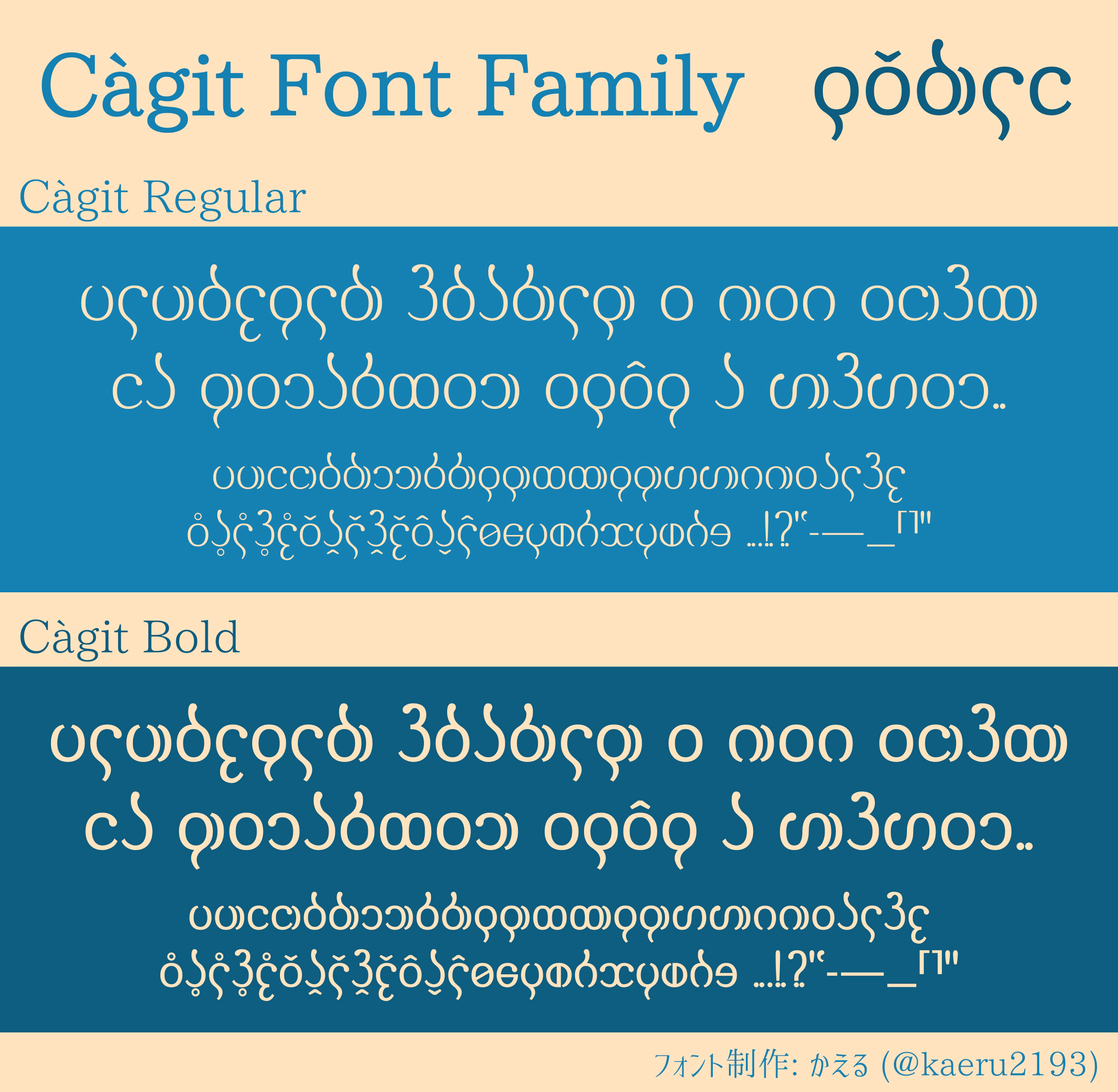 ʻkáles-ʻcolfomas (かえる) 様によるセリフ体風のフォントです。 2 種類のウェイトが用意されています。
