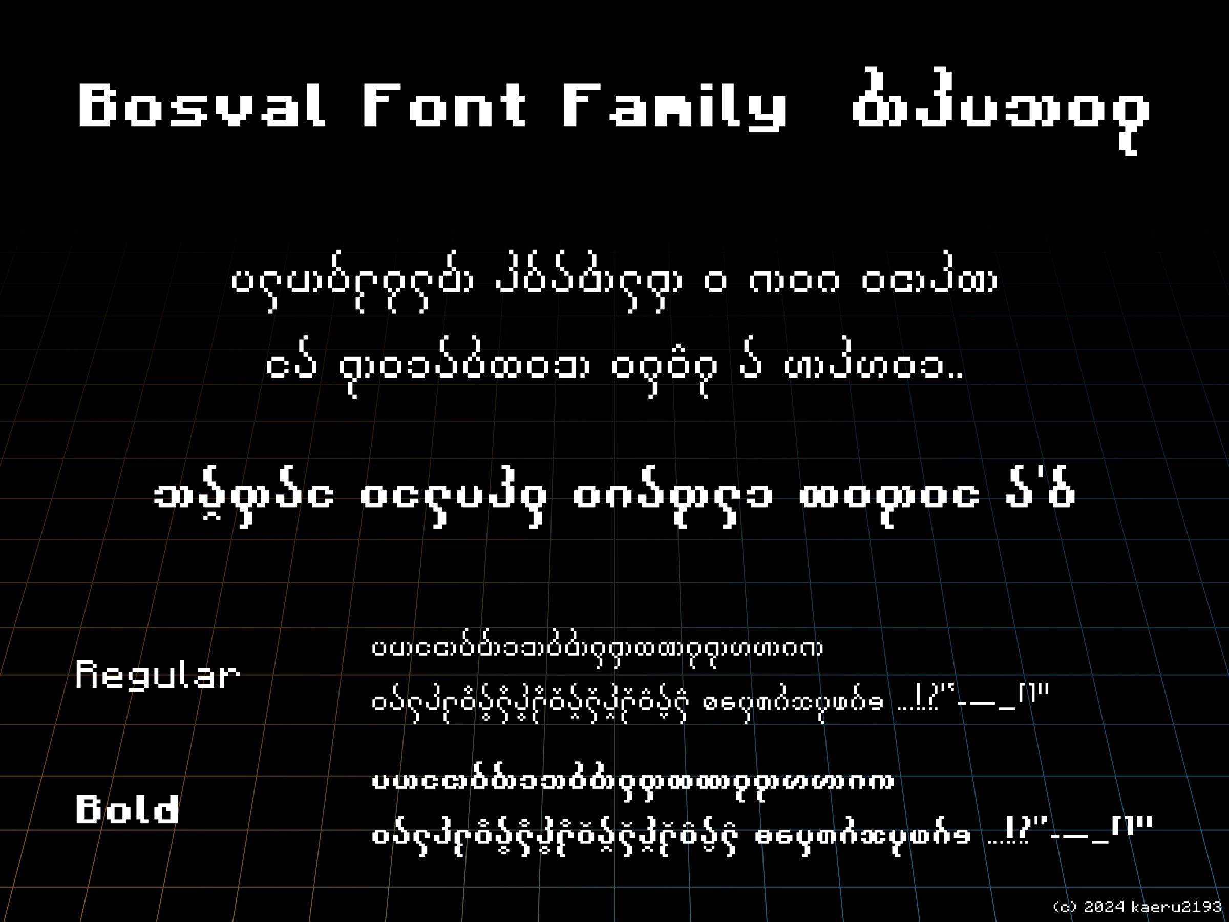 四角形が特徴的なカデグ体のフォントです。 合計で以下の 24 個のフォントファイルから成ります。