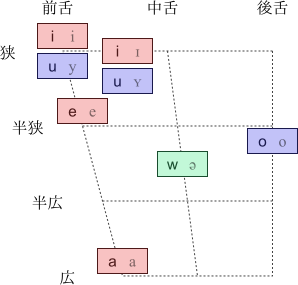 母音は以下の通りである。